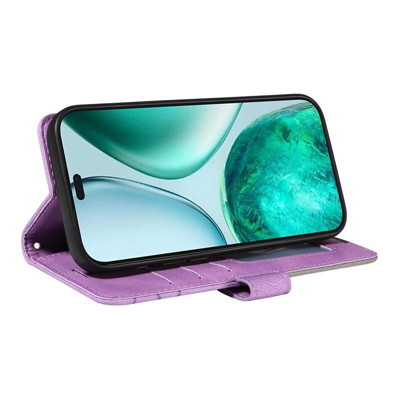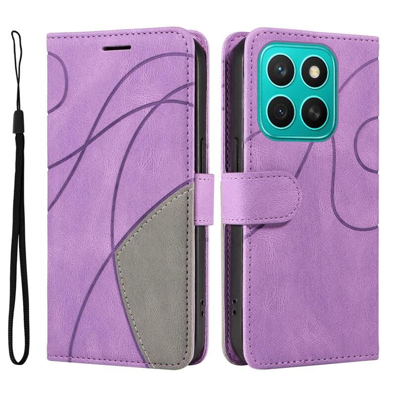 Θήκη τηλεφώνου από δέρμα με αναδιπλούμενο σχέδιο για Honor X8C 4G Global, διχρωμίας (Μπλε)