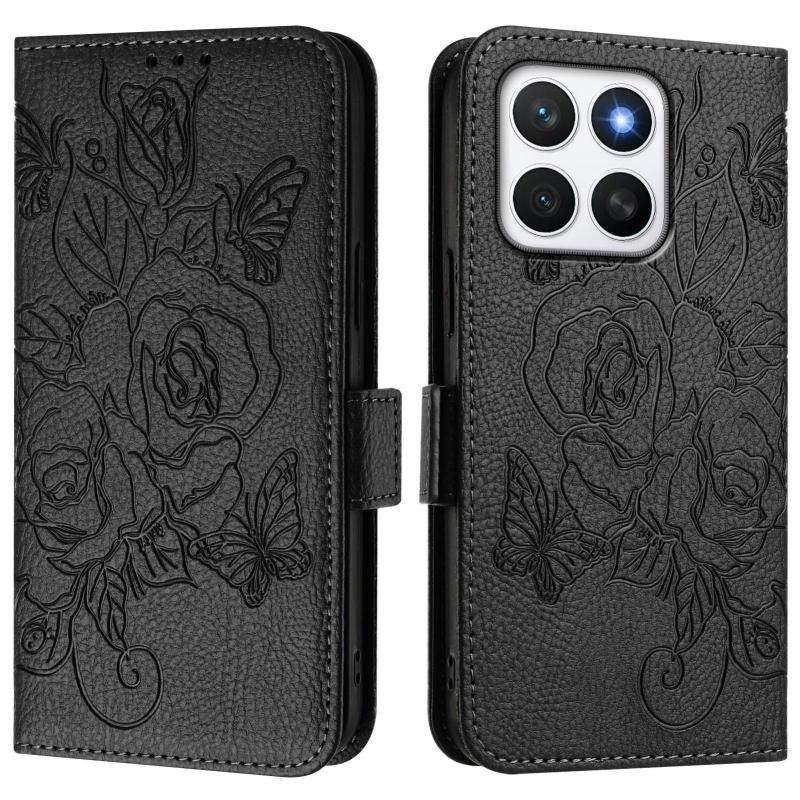For Honor X8c 4G Global Embossed Rose RFID Anti-theft Leather Phone Case(Black)