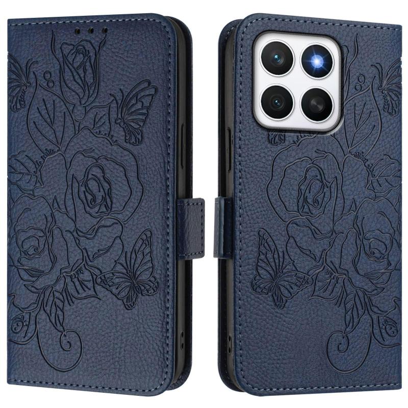 For Honor X8c 4G Global Embossed Rose RFID Anti-theft Leather Phone Case(Dark Blue)