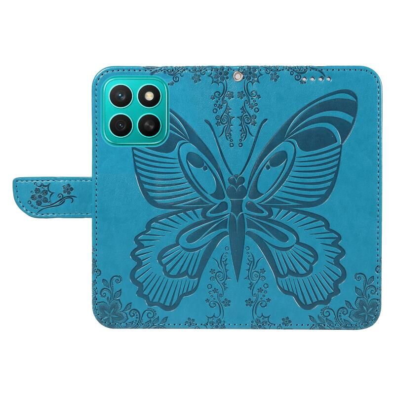 Θήκη τηλεφώνου από δέρμα με ανάγλυφο σχέδιο πεταλούδας Swallowtail για Honor X8C 4G Global (Μπλε)