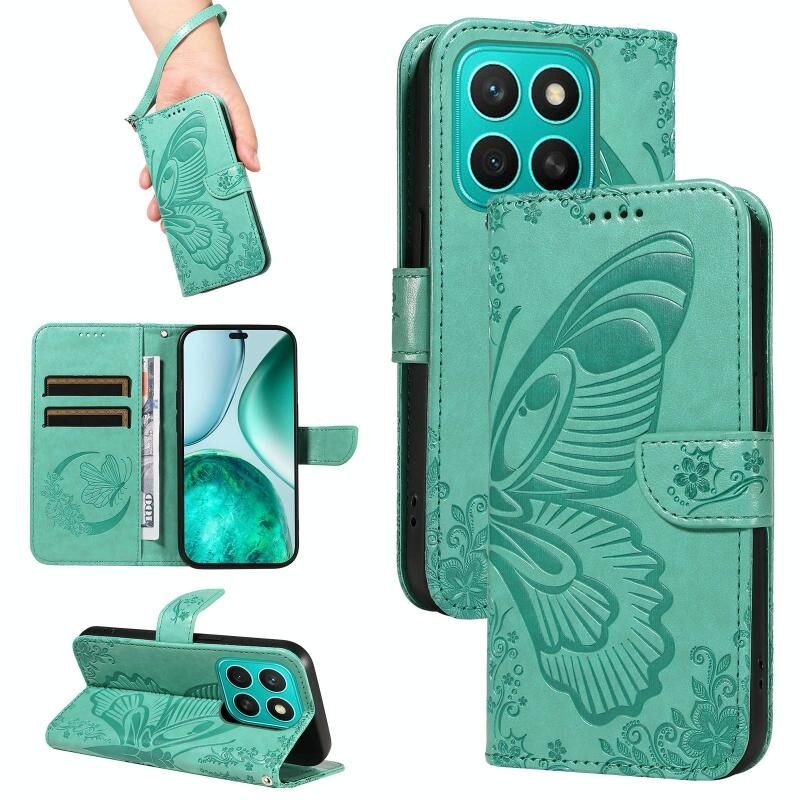 Θήκη τηλεφώνου από δέρμα με ανάγλυφο σχέδιο πεταλούδας Swallowtail για Honor X8C 4G Global (πράσινο)
