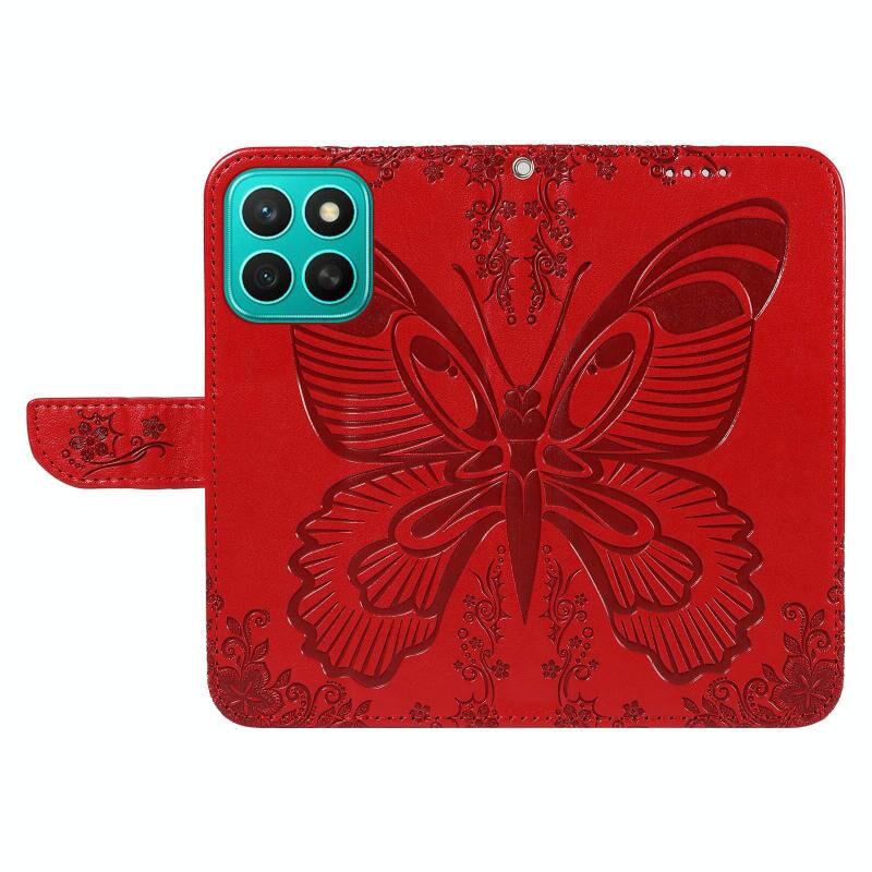 Θήκη τηλεφώνου από δέρμα με ανάγλυφο σχέδιο πεταλούδας Swallowtail για Honor X8C 4G Global (Κόκκινο)