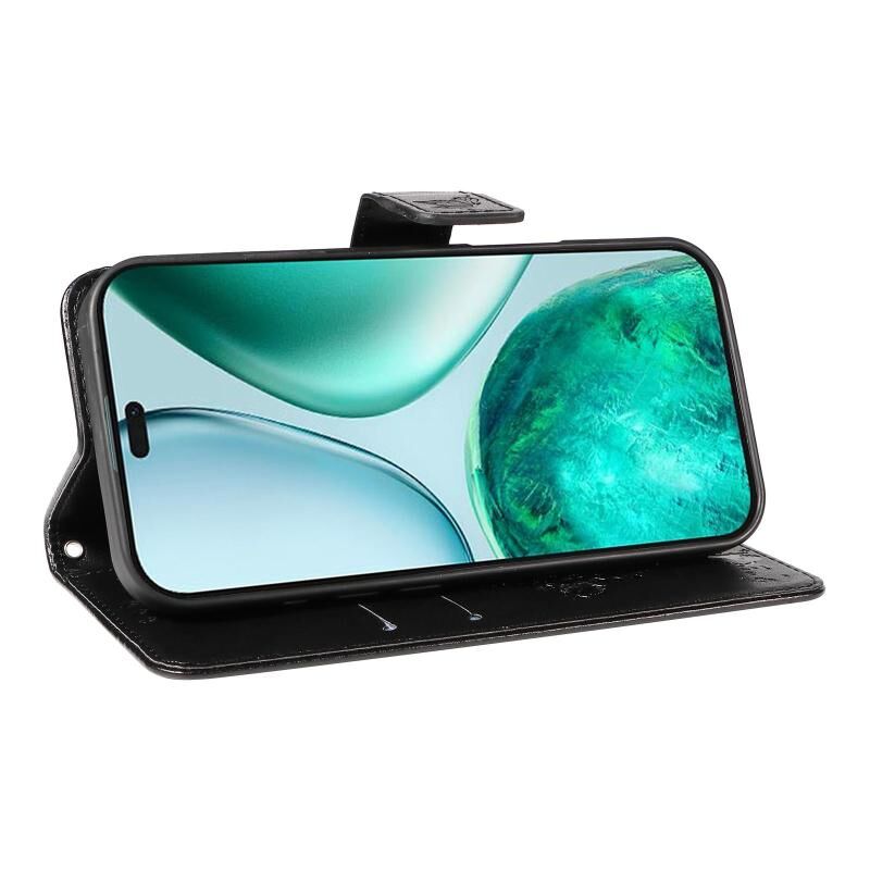 Θήκη τηλεφώνου από δέρμα με σχέδιο ανάγλυφου δέντρου & γάτας για Honor X8C 4G Global (Ροζ)