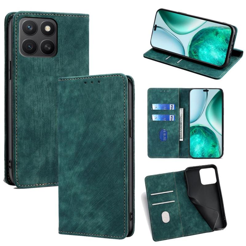 For Honor X8c 4G RFID Anti-theft Brush Magnetic Leather Phone Case(Green)