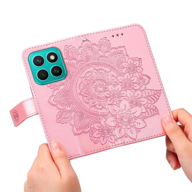 Θήκη τηλεφώνου Honor X8c 4G από δέρμα με ανάγλυφο επτά πέταλα λουλουδιών (Ανοιχτό Μωβ)