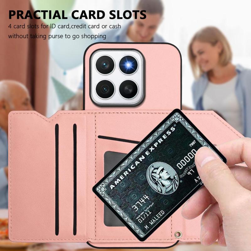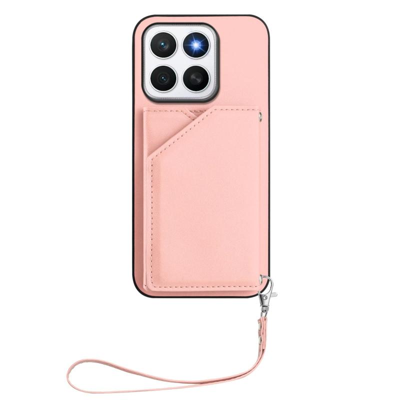 For Honor X8c 4G Skin Feel Four Card Slots Phone Case with Wrist Strap(Pink)