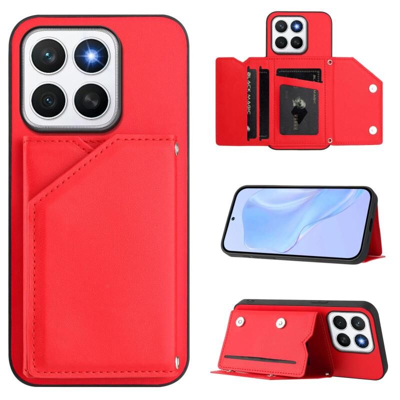 Θήκη κινητού τηλεφώνου για Honor X8c 4G με αίσθηση δέρματος, τέσσερις θήκες για κάρτες και λουρί καρπού (Ροζ)