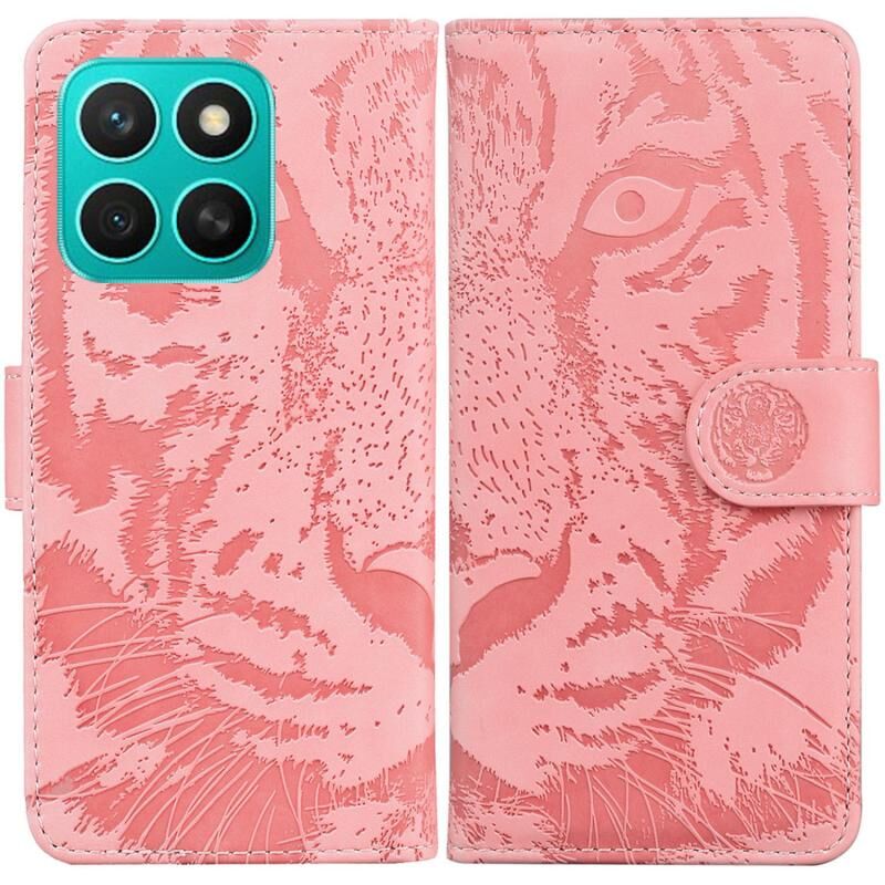 Θήκη τηλεφώνου από δέρμα με σχέδιο Tiger Embossing για Honor X8c 4G (ρόζ)