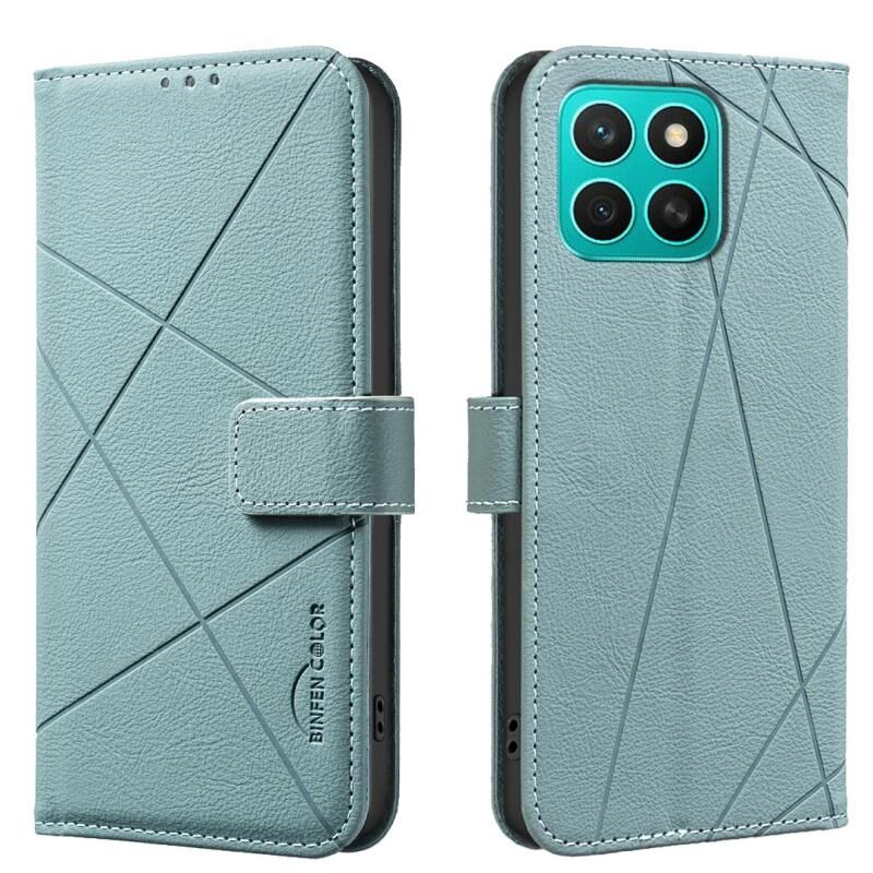For Honor X8C Geometric Pattern RFID Leather Phone Case(Green)