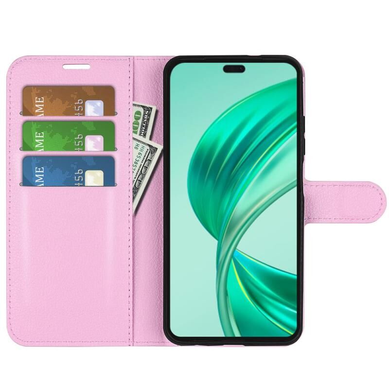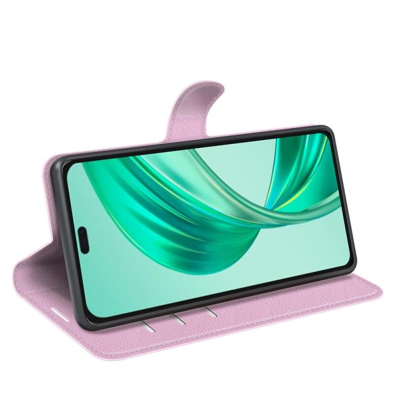 Θήκη τηλεφώνου από δέρμα με οριζόντιο άνοιγμα και υφή Litchi για Honor X8c με βάση στήριξης (Κόκκινο)