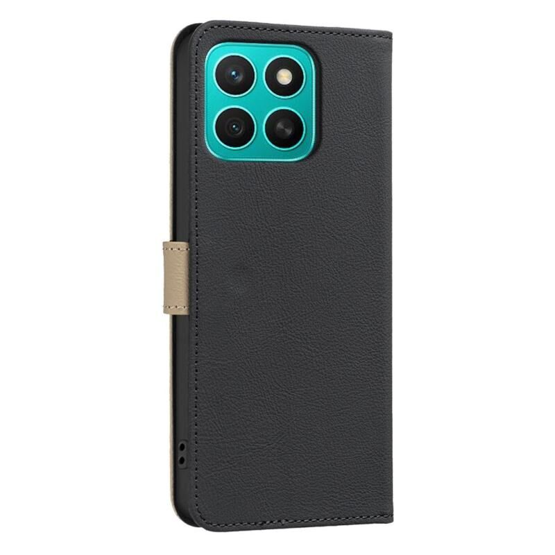 For Honor X8C Splicing Color Hollow Flower Pattern RFID Leather Phone Case(Black)