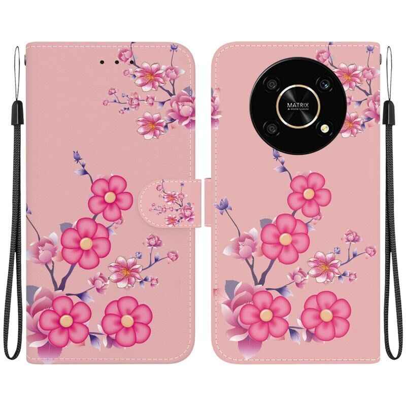 Θήκη τηλεφώνου από δέρμα με πολύχρωμη υφή κρυστάλλου και σχέδιο (κερασιές) για Honor X9 5G.