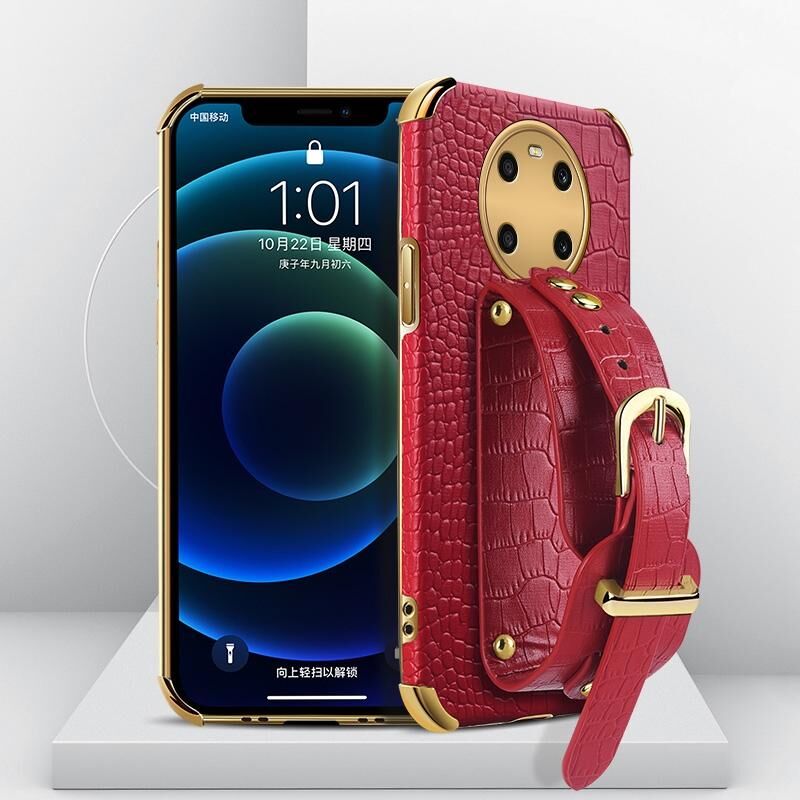 Θήκη για Honor X9, Ηλεκτρολυτική TPU με Δερμάτινο Μοτίβο Κροκόδειλου και Λουρί Καρπού (Μαύρο)