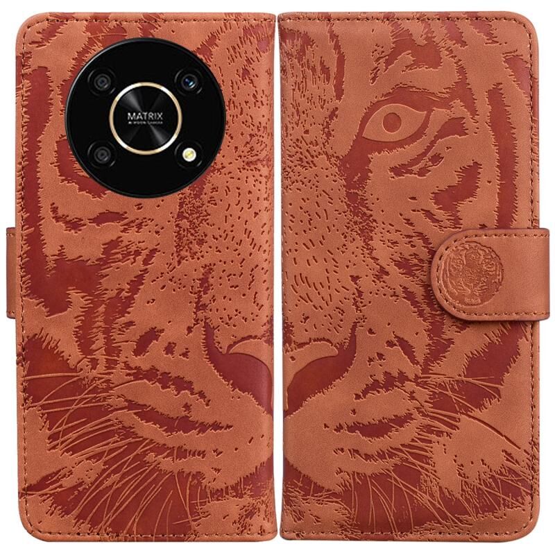 Για Honor X9 / X9 5G Tiger ανάγλυφο μοτίβο Flip δέρμα τηλέφωνο υπόθεση (καφέ)