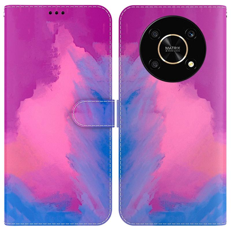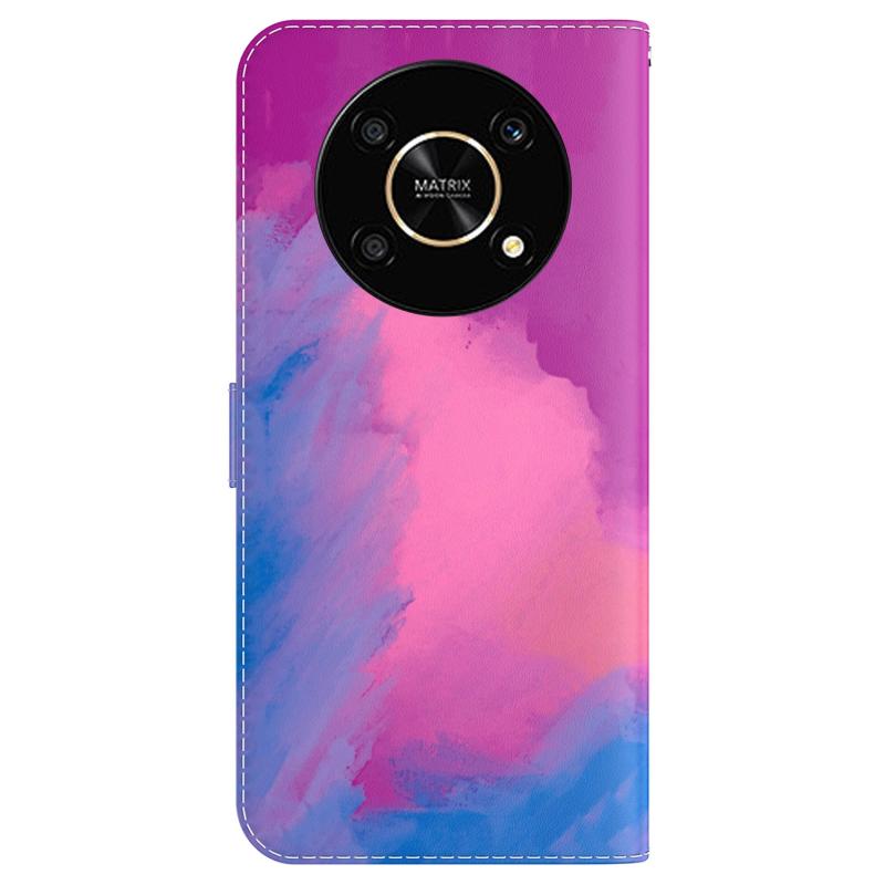 Θήκη τηλεφώνου από δέρμα με σχέδιο ακουαρέλας για Honor X9 / X9 5G (Μωβ-Κόκκινο)