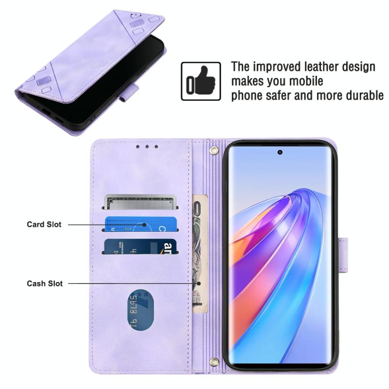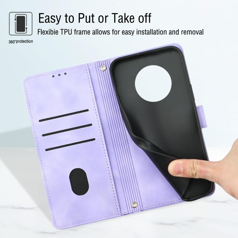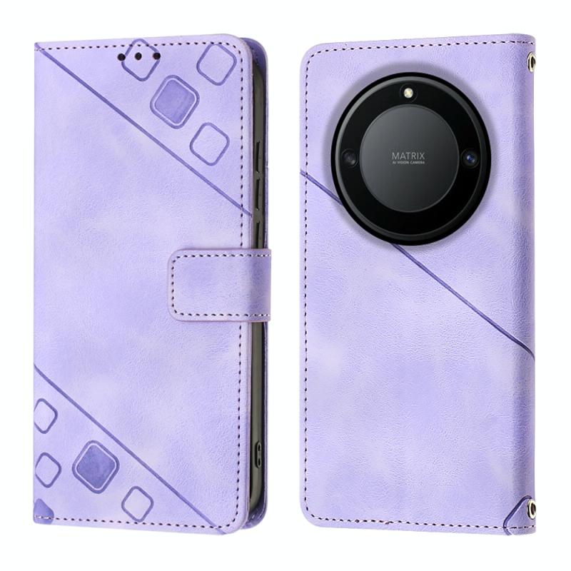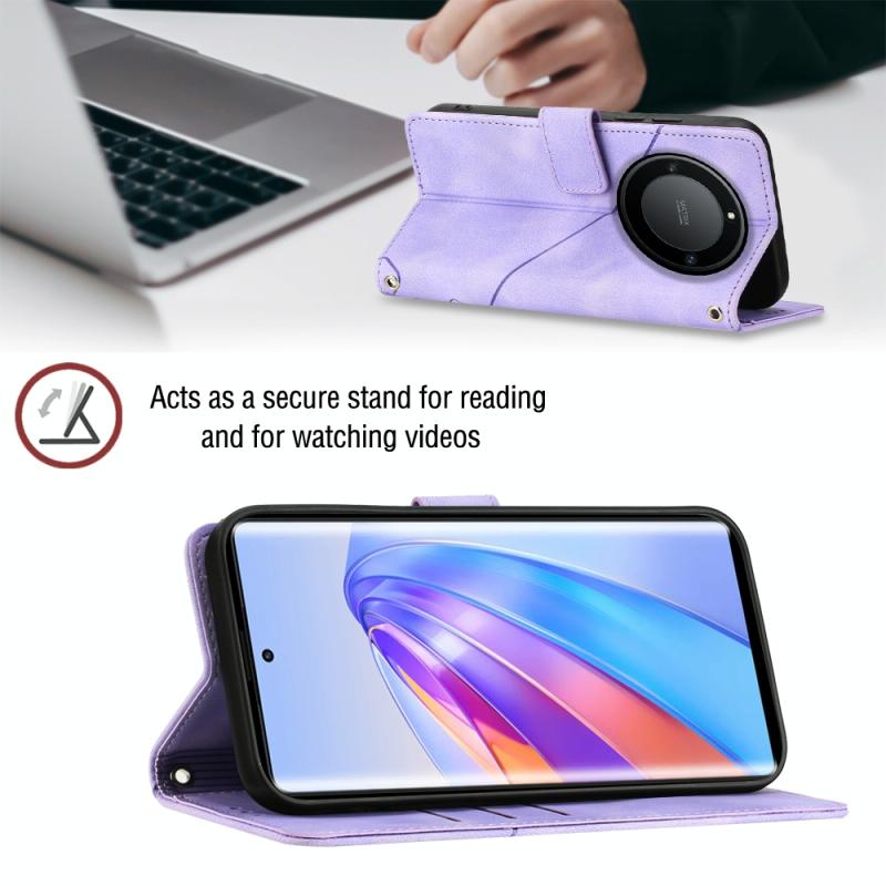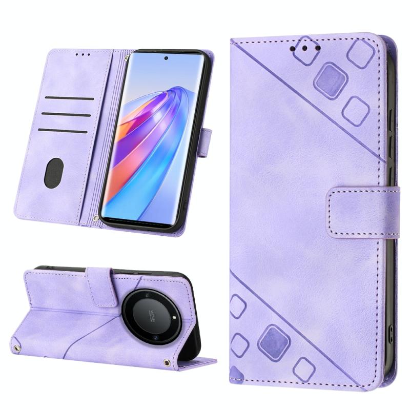 Θήκη κινητού τηλεφώνου Honor X9a 5G/Magic5 Lite με υφή δέρματος και ανάγλυφο σχέδιο (ανοιχτό μωβ)