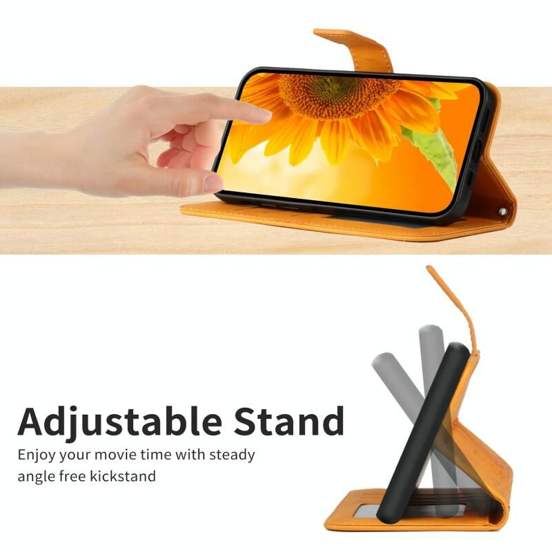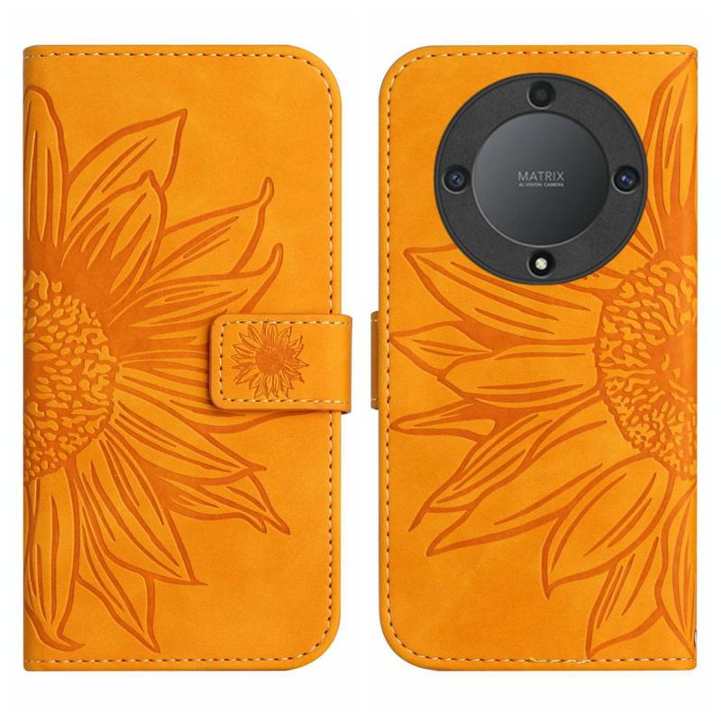 Θήκη τηλεφώνου τύπου flip από δέρμα με ανάγλυφο σχέδιο ηλίανθου για Honor X9a 5G / Magic5 Lite με αίσθηση δέρματος και λουρί (Κίτρινο)