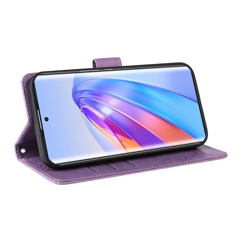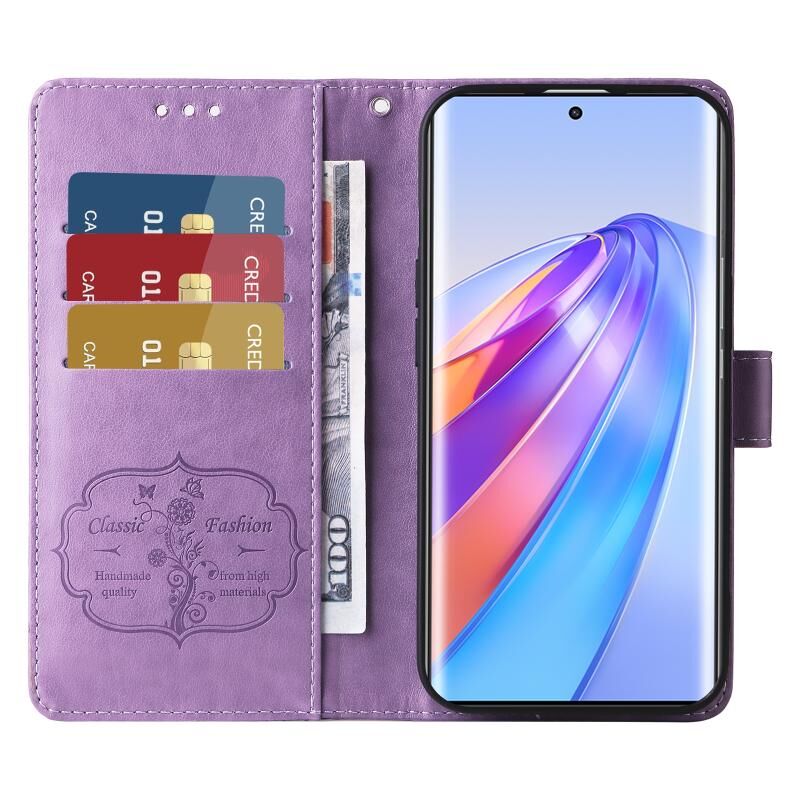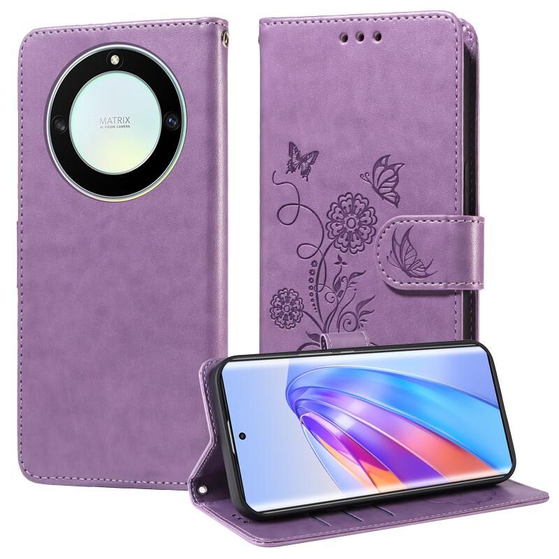 Θήκη τηλεφώνου από δέρμα με ανάγλυφα λουλούδια και πεταλούδες για Honor X9a 5G / Magic5 Lite / X40 5G (Μωβ)