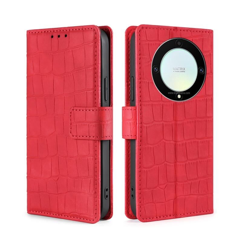 Θήκη κινητού τηλεφώνου από δέρμα με μαγνητικό κούμπωμα και υφή κροκόδειλου για Honor X9a 5G (Καφέ)