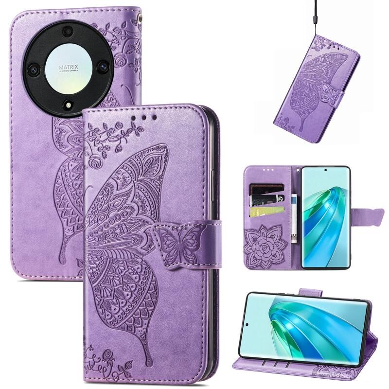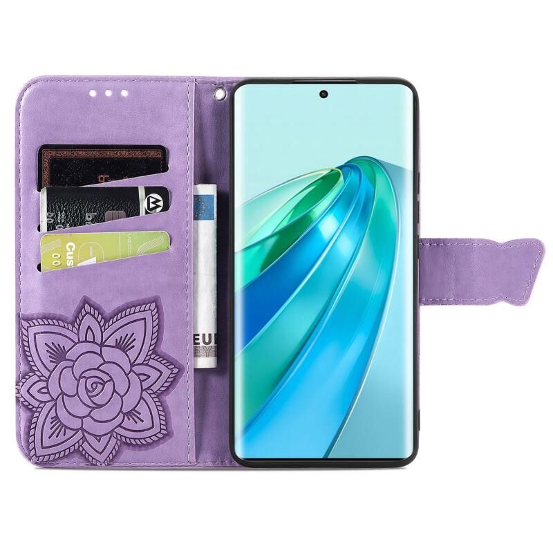 Θήκη τηλεφώνου Honor X9a Butterfly Love Flower Embossed Leather (Ροζ)