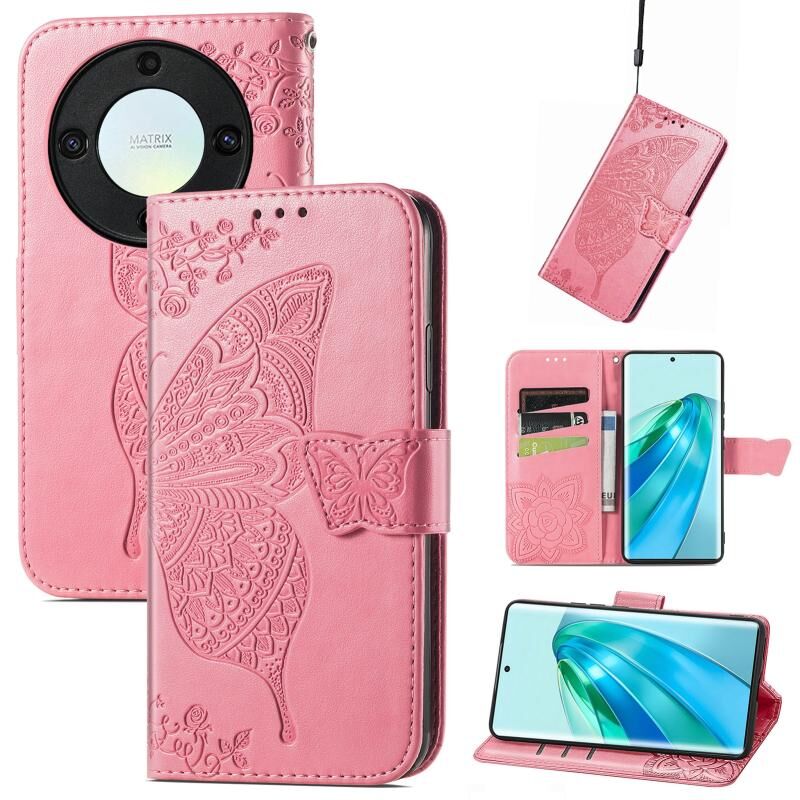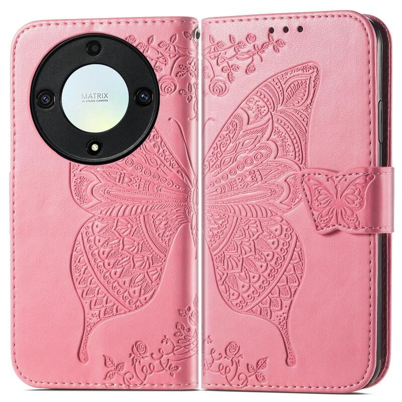 Θήκη τηλεφώνου Honor X9a Butterfly Love Flower Embossed Leather (Ροζ)