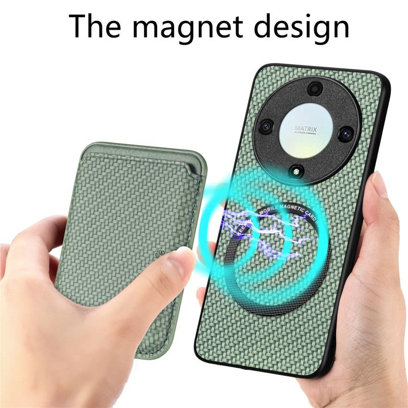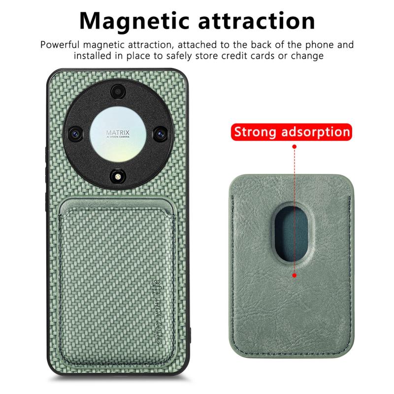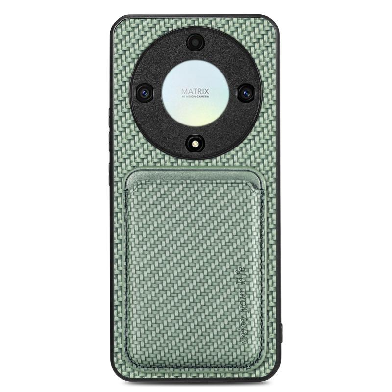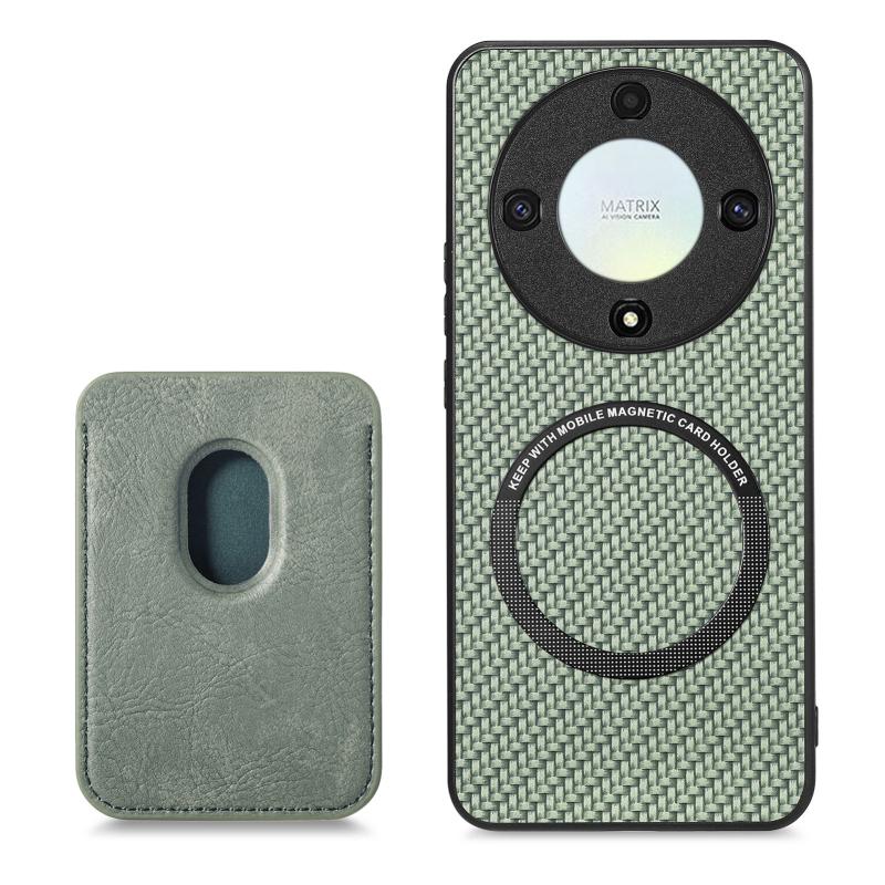 For Honor X9A Carbon Fiber Leather Card Magsafe Magnetic Phone Case(Green)