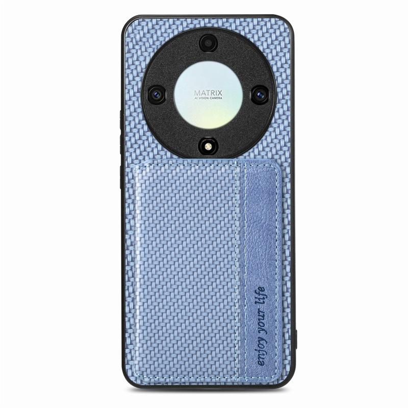 For Honor X9A Carbon Fiber Magnetic Card Wallet Bag Phone Case(Blue)