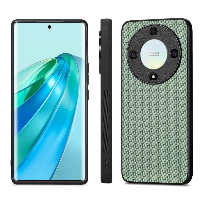 For Honor X9A Carbon Fiber Texture Leather Back Cover Phone Case(Green)
