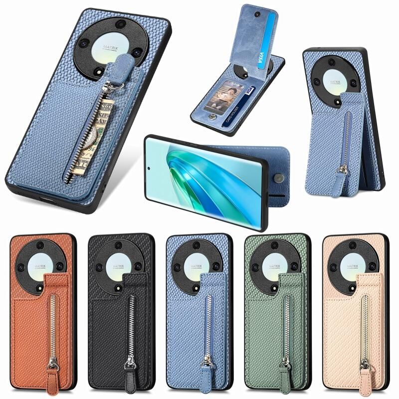 Για Honor X9A Carbon Fiber Κάθετη Flip φερμουάρ τηλέφωνο υπόθεση (μπλε)