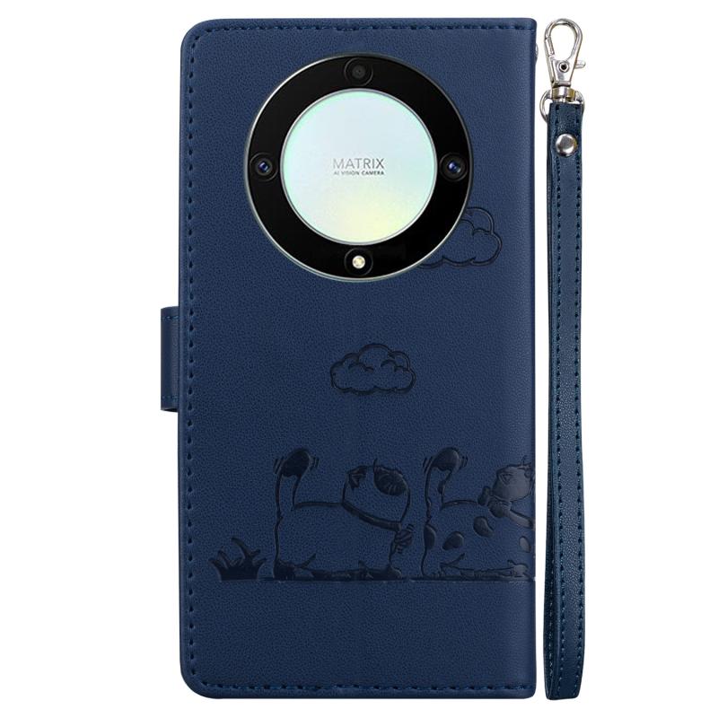 For Honor X9a Cute Cats RFID Leather Phone Case(Blue)