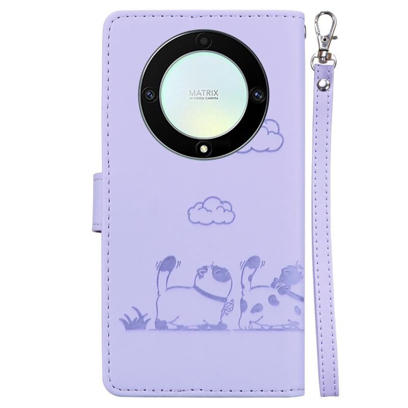 Θήκη τηλεφώνου από δέρμα με τεχνολογία RFID για Honor X9a, χαριτωμένα γατάκια (Μωβ)