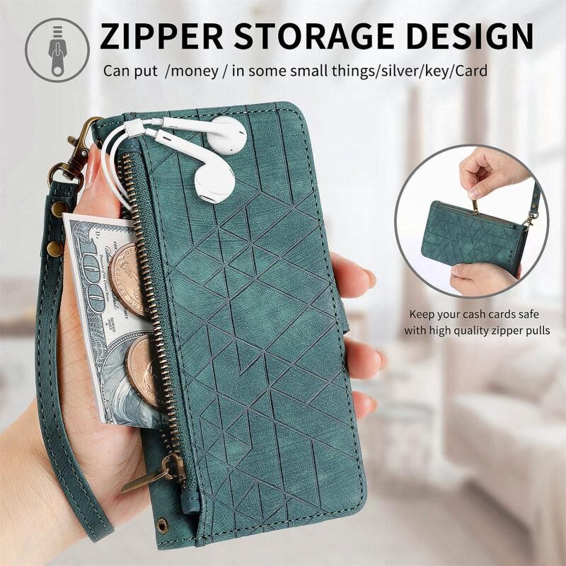 Για Honor X9a γεωμετρική φερμουάρ πορτοφόλι πλευρά πόρπη δερμάτινη θήκη τηλεφώνου (πράσινο)