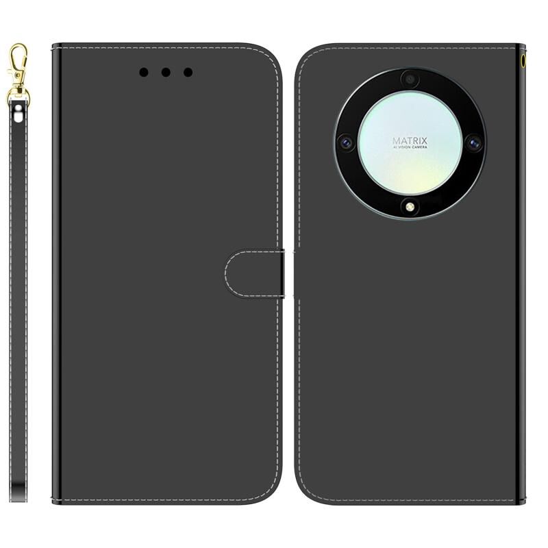 Θήκη τηλεφώνου από δέρμα με οριζόντιο άνοιγμα για Honor X9a, με απομίμηση καθρεπτικής επιφάνειας (Μαύρο)
