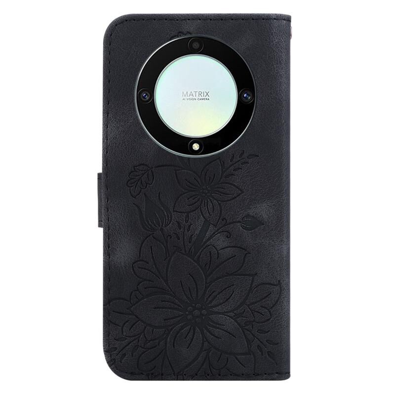 Για Honor X9a Lily ανάγλυφη δερμάτινη θήκη τηλεφώνου (Μαύρο)