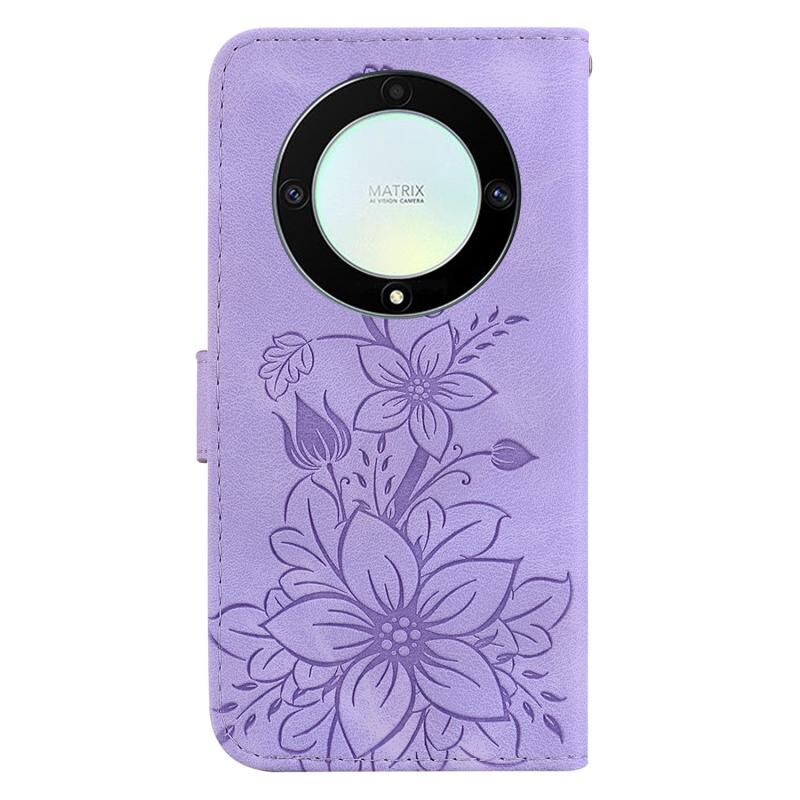 Για Honor X9a Lily ανάγλυφη δερμάτινη θήκη τηλεφώνου (μωβ)
