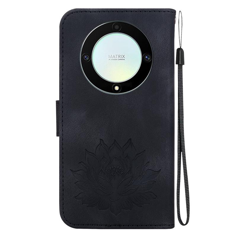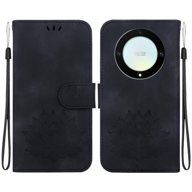 For Honor X9a Lotus Embossed Leather Phone Case(Black)
