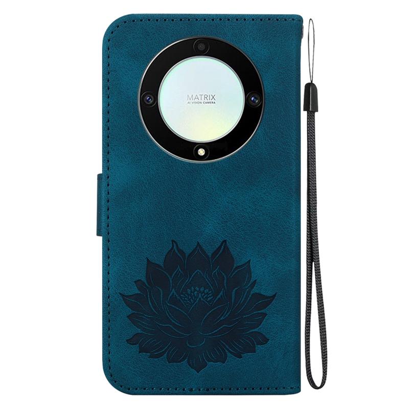 For Honor X9a Lotus Embossed Leather Phone Case(Dark Blue)