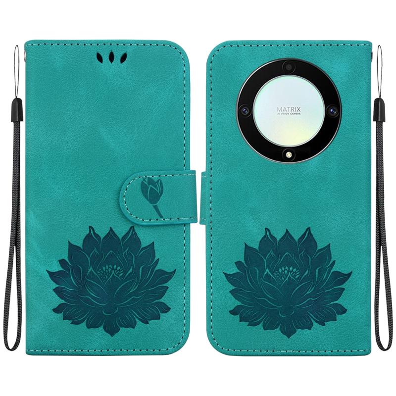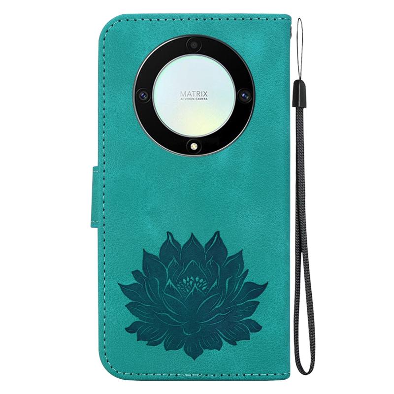 For Honor X9a Lotus Embossed Leather Phone Case(Green)