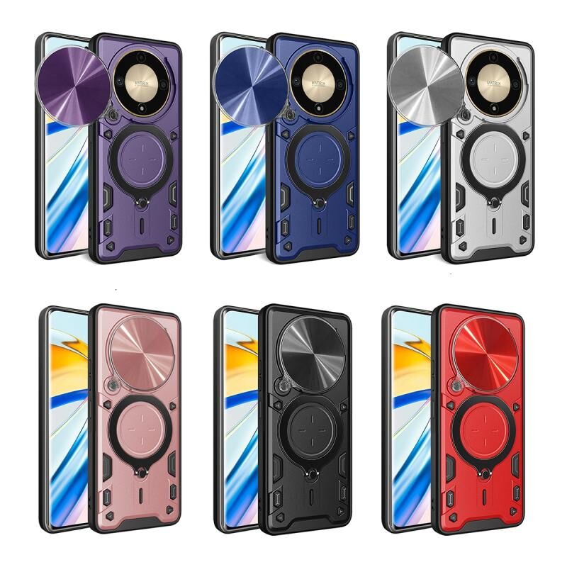 Θήκη κινητού τηλεφώνου για Honor X9a / Magic5 Lite με υφή CD, συρόμενο προστατευτικό κάμερας και μαγνητική βάση (Ροζ)