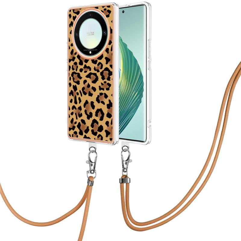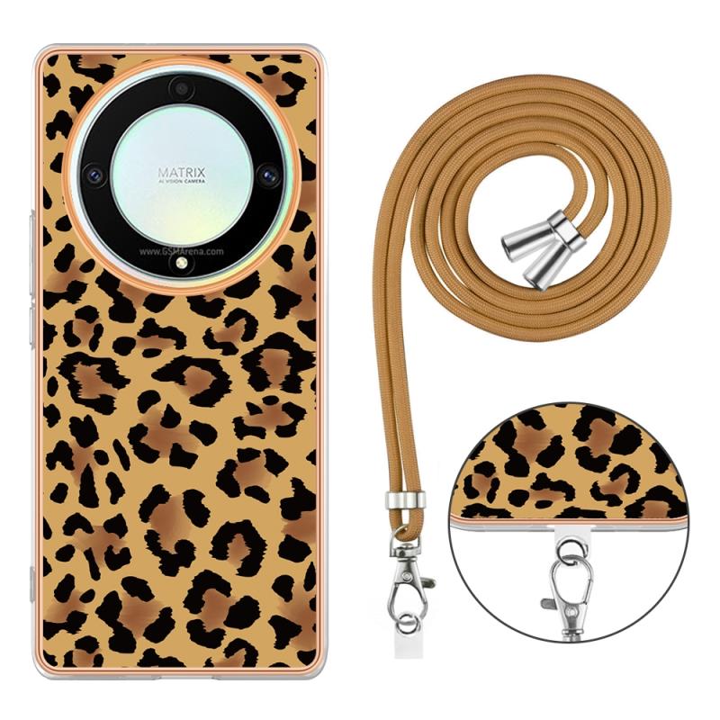 For Honor X9a / Magic5 Lite Electroplating Dual-side IMD Phone Case with Lanyard(Leopard Print)