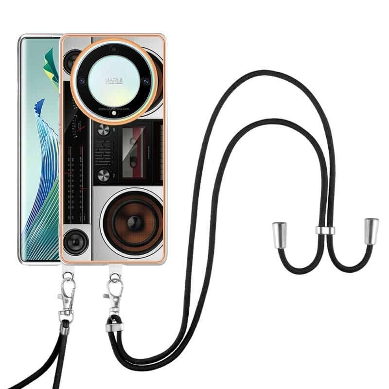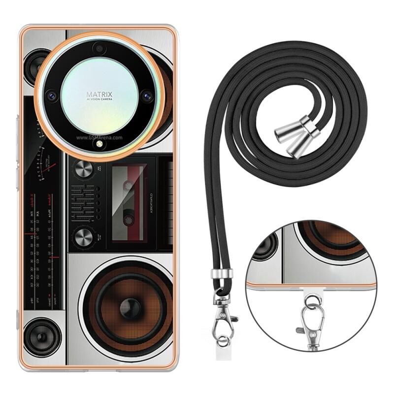 Θήκη τηλεφώνου με κορδόνι για Honor X9a / Magic5 Lite με ηλεκτρολυτική επιμετάλλωση και διπλής όψης IMD (Ρετρό Ραδιόφωνο)