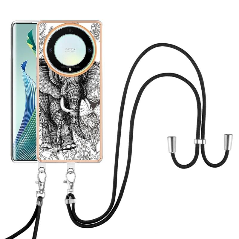 Θήκη τηλεφώνου με κορδόνι για Honor X9a / Magic5 Lite με ηλεκτρολυτική επιμετάλλωση και διπλής όψης IMD (Totem Elephant)