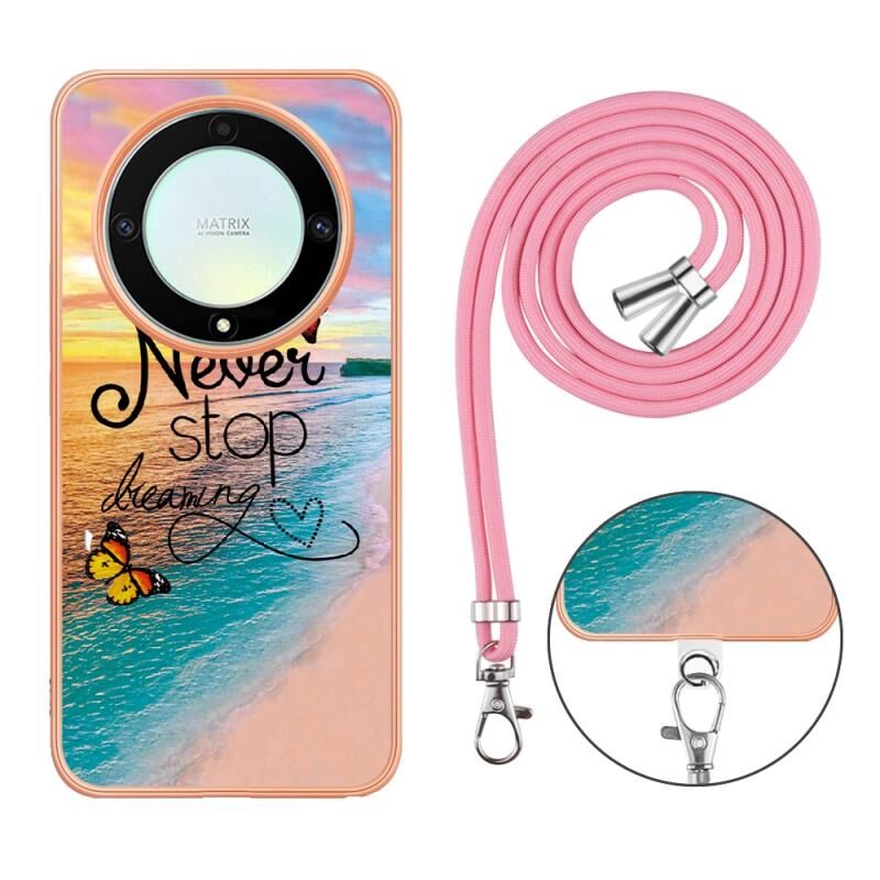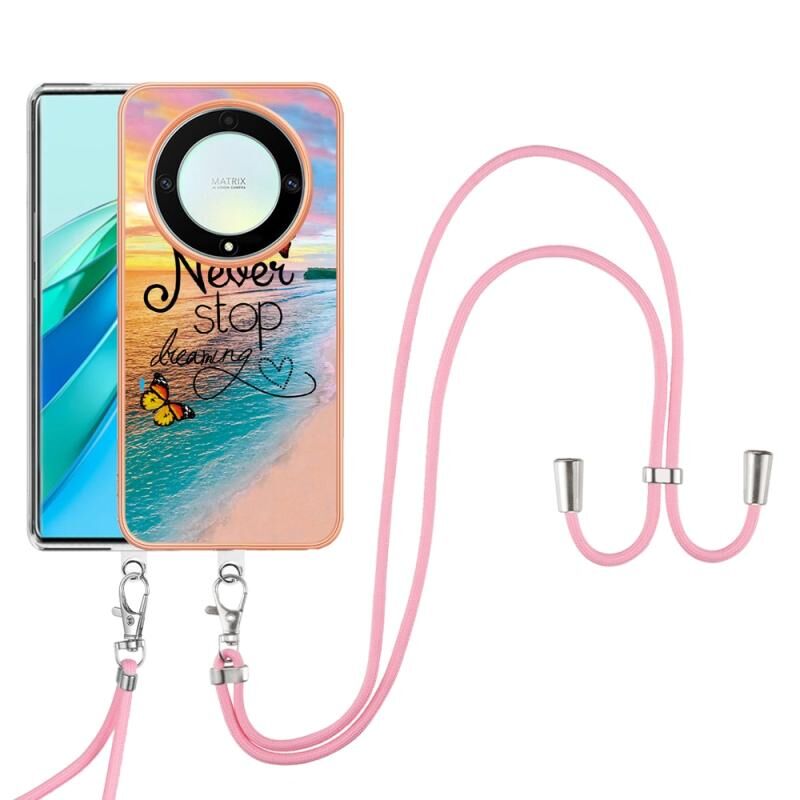 Θήκη κινητού τηλεφώνου με κορδόνι για Honor X9a/Magic5 Lite, με ηλεκτρολυτική επιμετάλλωση IMD TPU (Όνειρο Πεταλούδας)