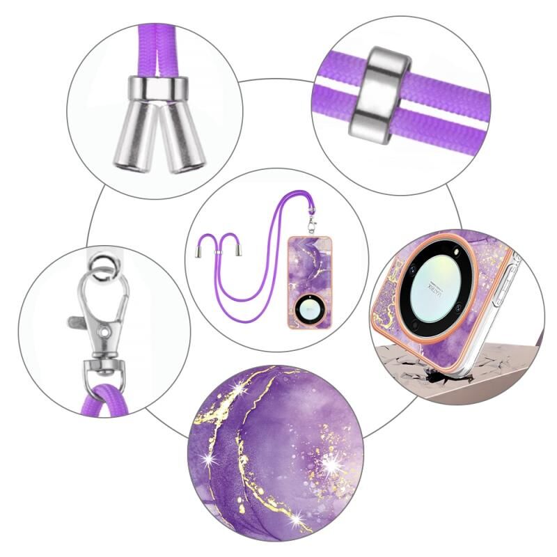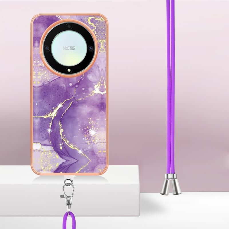 Θήκη τηλεφώνου με κορδόνι για Honor X9a/Magic5 Lite, με ηλεκτρολυτική μαρμάρινη επένδυση IMD διπλής όψης (Μωβ 001)
