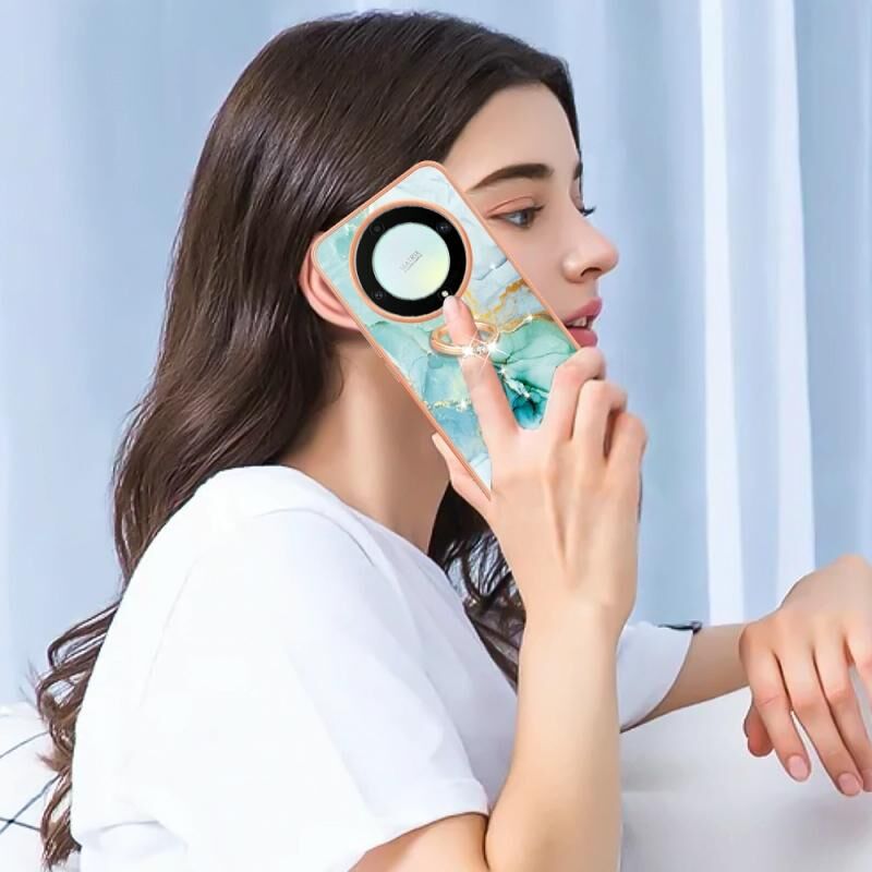 Θήκη κινητού τηλεφώνου για Honor X9a / Magic5 Lite με ηλεκτρολυτική μαρμάρινη τεχνολογία IMD TPU με δακτύλιο στήριξης (Λευκό 006)