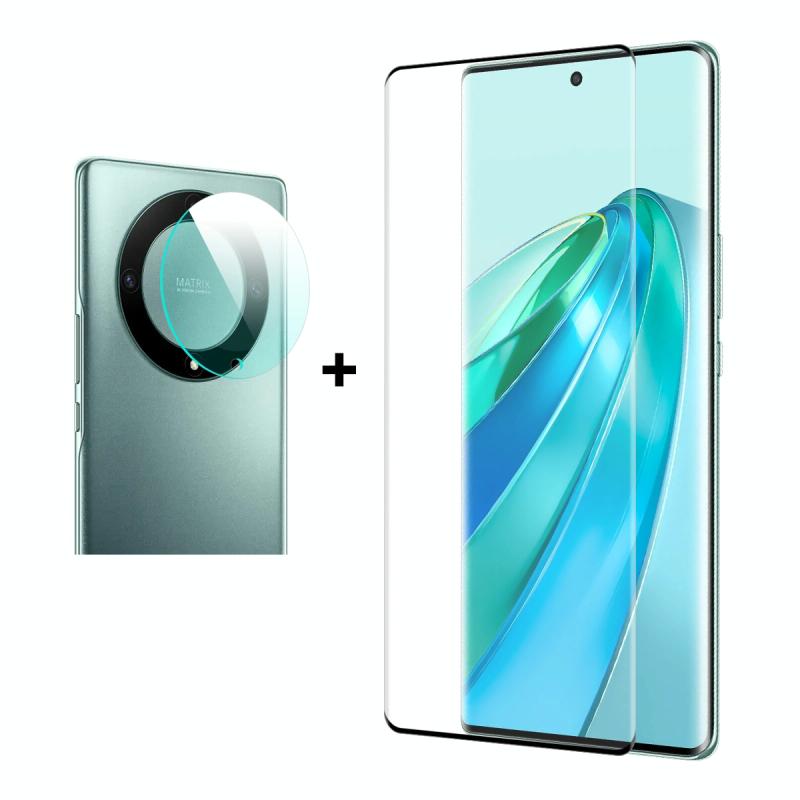 For Honor X9A / Magic5 Lite ENKAY 3D Hot Bending Edge Glue Tempered Glass Full Film with Lens Film (ENKAY)