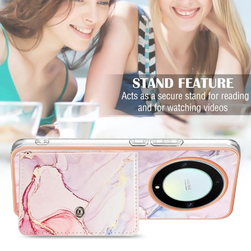 Θήκη κινητού τηλεφώνου με σχέδιο μαρμάρου IMD και θήκη καρτών για Honor X9a / Magic5 Lite (Λευκό Γαλαξιακό Μάρμαρο)