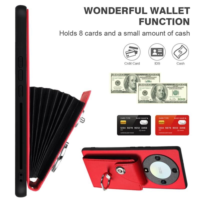 Για Honor X9a/Magic5 Lite Οργάνων κάρτα τσάντα δαχτυλίδι κάτοχος PU τηλέφωνο υπόθεση με κορδόνι (Κόκκινο)
