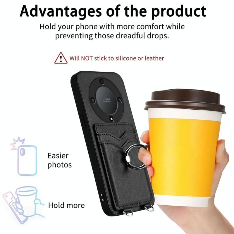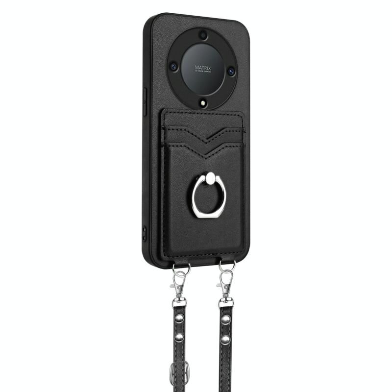 Για Honor X9a / Magic5 Lite R20 Crossbody σχοινί δαχτυλίδι κάρτας κάτοχος υπόθεση τηλεφώνου (μαύρο)