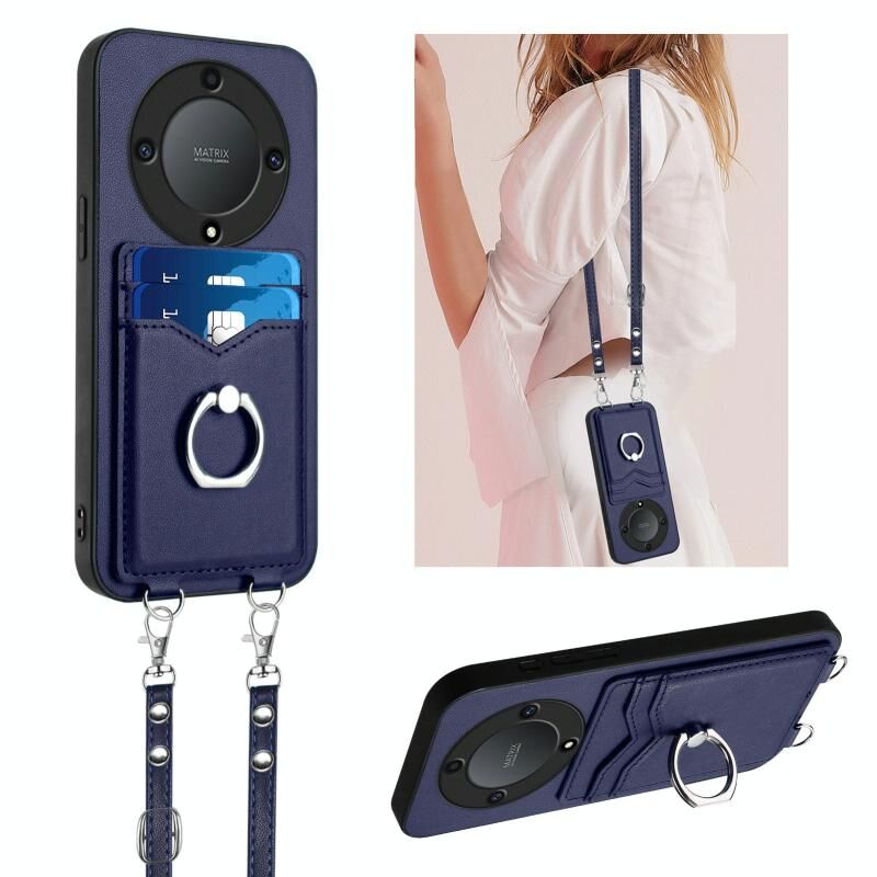 Για Honor X9a / Magic5 Lite R20 Crossbody σχοινί δαχτυλίδι κάρτα κάτοχος υπόθεση τηλεφώνου (μπλε)
